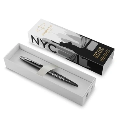 Inspired by New York, the city that never sleeps , this latest Jotter, from the ‘Global Icons’ Special Edition range features a pattern echoing the brightly lit skyscrapers of the metropolis at night. For globally minded young adults, this exclusive Jotter appeals as a fine writing instrument as well as a standout piece of bold, contemporary design. A fine example of PARKER craftsmanship, the city skyline and pattern is expertly lasered into the distinctive barrel and a Matte Black powder coated finish completes the sophisticated high-end look. Limited release of these highly crafted pens makes each one a prized find for any collector or enthusiast and a truly special gift for that equally special someone. Each Jotter SE New York comes with its own specially designed gift box, inspired by the legendary city, and will appeal to the traveller in everyone.