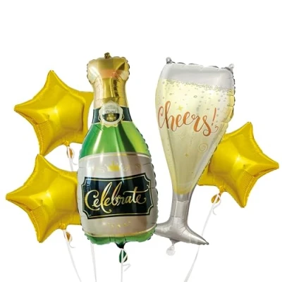 Party Time EA9470 Drugstore Aluminium Champagne Balloon X4 and Evenly Decoration Light