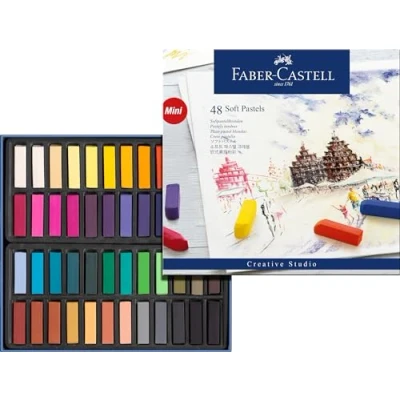 PASTELS - Faber-Castell Creative Studio Mini Soft Pastels are a versatile and portable option for artists who enjoy working with soft pastels, offering a wide colur range and ease of use. VIBRANT - These soft pastels come in a vibrant and diverse range of colours, providing artists with numerous options for their artwork. Make your work stand out with Faber-Castell. BLENDABLE - They have a smooth texture that allows for easy blending and layering, making them ideal for various artistic techniques. Known for their rich pigments, Faber-Castell soft pastels deliver intense and vivid color application. VERSATILE - Soft Pastels are suitable for a wide range of surfaces, including paper, cardstock, and textured papers. Simply choose your favoured surface and off you go! FLEXIBILITY - Artists can use these pastels for various applications, such as sketching, blending, and creating detailed artwork. Choose your favourite method and watch your work come to life.