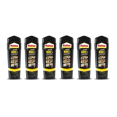 Strong all-purpose adhesive - The universal adhesive can be used for a range of different materials such as wood, metal, stone, ceramic, glass or most textiles. Headstand Bottle - Thanks to its size and ergonomic shape, the upside down bottle can be stored upright and the liquid adhesive is ready to use. Versatile formula - Flextec formula suitable for flexible materials. The repair adhesive is waterproof, resistant to UV rays, shocks and temperatures (-50°C to +110°C). Dries Transparent - The heat resistant adhesive can be easily applied to medium to large surfaces and is almost invisible after drying. Practical package - Pattex Repair 100% all-purpose adhesive, repair adhesive with strong Flextec formula, 6 x 100 g headstand bottle. *Not suitable for PE, PP, PTFE, ABS, PS (stiff), copper, brass.