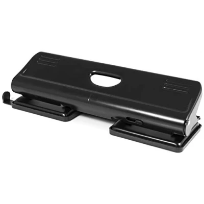 METAL HOLE PUNCH - Pavo 4-hole punch with a durable all-metal construction in a sleek black finish to suit any home, school or office 4 HOLES - Punches 4 holes 6 mm in diameter with standard 4-hole spacing (80 mm between holes), suitable for use in most ring binders and lever arch files SHEET CAPACITY - Capable of punching through 22 sheets of 80gsm paper at a time and features a practical, adjustable paper guide with markings for A6, A5, A4, A3, B6, B5, B4 and 888 paper formats EASY STORAGE - Lock-down switch keeps handle flat when hole punch is not in use for easy storage on a desk, shelf or in a drawer CONVENIENT USE - Fitted confetti tray with handy opening flap for easy emptying and a personalisation window for customisation and easy identification of ownership Color: Black PREMIUM 4-hole puncher 22 sheet capacity With Lock