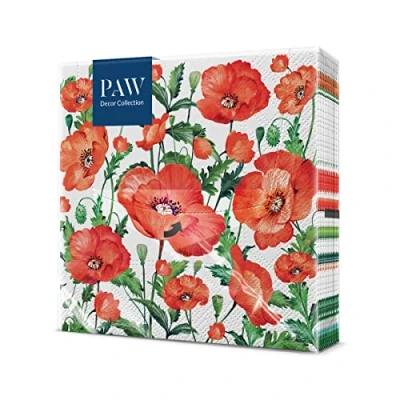 PAW 3 Ply Paper Napkin 33 x cm 20 Pieces Napkins Ideal for Open Days, Garden Parties, Family Parties with Friends (Flanders Poppy)