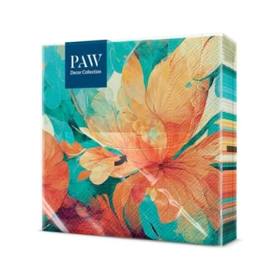 PAW Napkins 3 Ply (33 x 33 cm) I Pack of 20 Perfect for Birthdays, Parties, Weddings, Communion and Celebrations Table Decoration Colourful Paper Orange Turquoise Flowers Zen Abstract