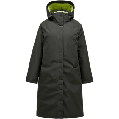 The Peak Performance Treeline Down Coat for women is a lightweight and versatile down parka with an oversized fit, built for comfort across all seasons. The technical 2.5-layer HIPE® shell is wind- and waterproof yet breathable, making it suitable for a variety of conditions. With a detachable and adjustable hood, zippered hand pockets hidden under a storm flap, and an adjustable waist, this coat blends technical performance with modern style and long-line coverage.