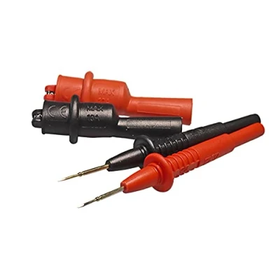 This measuring tip set for any commercially available measuring leads with 4 mm safety sockets was developed to be able to measure even small components precisely This set of measuring tips also includes the matching alligator clips so that it is possible to fix the measuring tips to the component to be measured When using the measuring tips without the crocodile clips, an overvoltage category of CAT I 1000 V is ensured The use of crocodile clips enables the application of overvoltage category CAT III