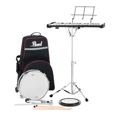 13˝ x 3.5˝ wood snare drum Wheeled, rolling nylon case 2.5 octave bells (f5-c8) 8˝ tunable practice pad, umbrella Style bell and practice pad stand Includes snare basket, music rack, bell mallets and snare drum sticks