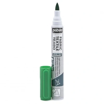 Pebeo 7A Light Green Fabric Marker - 1mm 1 mm brush tip for drawing, writing and making flats easier. Apply to most pre-washed light fabrics Iron on for 5 minutes with a steamless cotton position on the reverse of the fabric. Care of decorated stands: 48 hours after fitting, the colours are resistant to hand washing and/or machine washing at 40°C.