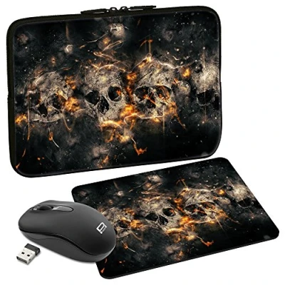 PEDEA Design Protective Case for Laptops up to 15.6 Inches (39.6 cm) with Mouse Pad and Cordless Mouse, Skulls