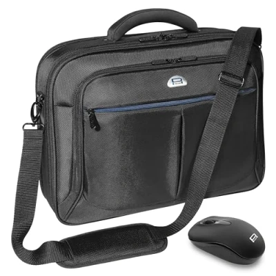 External dimensions of bag: 48.5 x 41.5 x 10 cm (WxHxD); laptop compartment: 44.5 x 34.5 x 6 cm (WxHxD) Various compartments provide practical divisions: 1x notebook compartment in the main compartment, 3x zipped compartments incl. 1x tablet compartment, pen holder, 1x Velcro compartment, trolley clip Equipped with a sturdy protective frame, thick padding, and water-repellent materials, this bag protects your notebook from scratches, moisture and shocks Long, smooth-sliding zips for easy access to your laptop or accessories; incl. wireless optical mouse with up to 1000 DPI, nano receiver, plug and play Compatible with many laptops, eg: HP 17, Acer Aspire 5 A517, ASUS ROG Strix Scar II GL704GW, MSI GL73, LENOVO V320-17IKB, Lenovo IdeaPad 320 17 Zoll, Lenovo IdeaPad 330 17 Zoll, Asus VivoBook 17