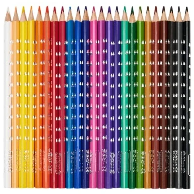 Ergonomic triangular shape for a relaxed painting posture Soft quality leads for easy painting in bright colours With silver-embossed triangles for easy grip that prevents slipping With silver-embossed name field 24 colours