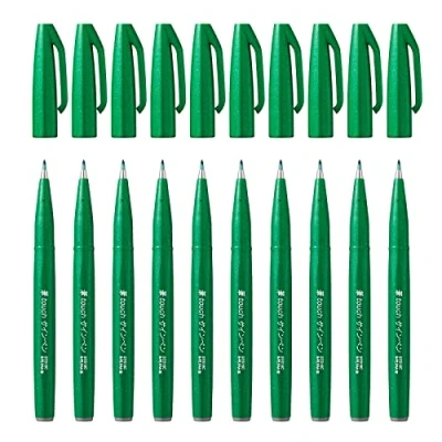 Pentel Brush Sign Pen Green (Pack of 10)