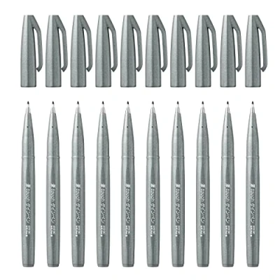 Pentel Brush Sign Pen Grey (Pack of 10)