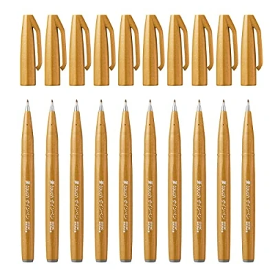 Pentel Brush Sign Pen Ochre (Pack of 10)