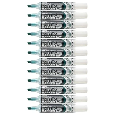 Pentel Maxiflo Dry Wipe Chisel Tip Marker Black (Pack of 12)