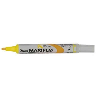 Pentel Maxiflo Dry wipe/White board marker with liquid ink Unique pump action system to replenish ink supply Fine Bullet Point Tip Removes from board easily with a dry cloth or board eraser Chisel tip writes between 1.1-5mm line