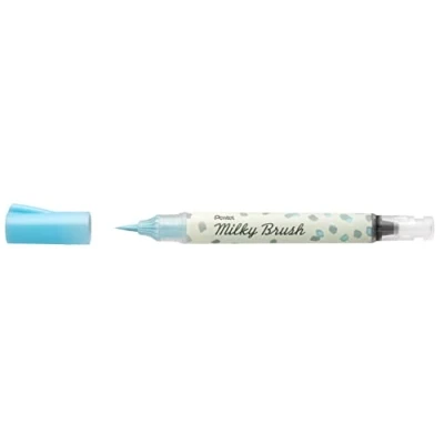 Let your creativity run wild with the pastel light blue Pentel Milky brush pen. With this brush pen from Pentel you can make thin and wide lines in one smooth movement. The push-button mechanism allows the pen's ink to flow easily. The water-based liquid ink covers well on black, white and coloured paper. This makes the brush pen ideal for drawing, painting and applying accents or details. The Pentel Milky brush pen is available in 8 colours. The colours can be mixed with each other for unique combinations.