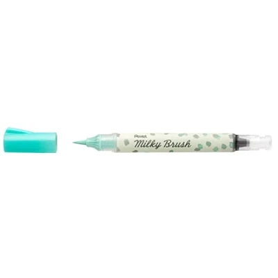 Let your creativity run wild with the pastel green Pentel Milky brush pen. With this brush pen from Pentel you can make thin and wide lines in one smooth movement. The push-button mechanism allows the pen's ink to flow easily. The water-based liquid ink covers well on black, white and coloured paper. This makes the brush pen ideal for drawing, painting and applying accents or details. The Pentel Milky brush pen is available in 8 colours. The colours can be mixed with each other for unique combinations.