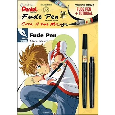 Fude Pen and Refill Pack + Tutorial Contains: 1 Fude Pen XFL2L Broad Tip; 1 XFR-AD Refill; 1 Tutorial with exercises to create your own manga Fude Pen with durable nylon bristles and ink reservoir. The special spiral flow dispensing system ensures constant ink leakage based on the pressure exerted on the barrel. Water-based black ink. Ideal for illustration, manga, calligraphy