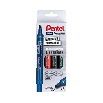 Pack of 4 Medium Tapered Tip Permanent Markers Colors: Black, Blue, Red, Green Sturdy metal body. Indelible ink Extreme resistance (weather, humidity, light, temperatures...) For all surfaces, all uses