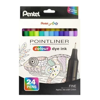 Pentel Pointliner Colour S40 Fineliner Dye Ink 0.4 mm (6 x Set of 24 Assorted Colours)