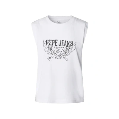 AmazonScoop Neck Tank Top Pepe Jeans Illustration on front with heart with wings 100% Cotton