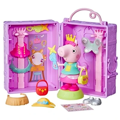THE BEST PEPPA PIG DRESS SET: Little fashion doll lovers will love this gorgeous Peppa Pig playset! Includes a Peppa Pig doll, 14 accessories, stand and case 14 FASHION AND STICKER ACCESSORIES: Swap and combine accessories such as fairy wings, wands, a crown, a beach hat, a tutu and much more to create fantastic and fashionable outfits! Use stickers to decorate Peppa doll and her clothes EASY TO WEAR FASHION - Even the little ones can put on and take off the accessories on the doll. Little girls and boys can show off their favorite outfits with the rotating doll stand 15CM PEPPA DOLL: The doll is 15cm tall, so it is easy to hold and dress for little girls and preschoolers OPEN THE WARDROBE CASE LIKE A BOOK: Place the case on a flat surface with the clasp facing up, then open it with both hands like a book and discover all the fun items contained inside, Manufacturer: Hasbro