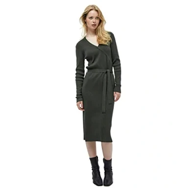 Peppercorn fashion: dress in 75 percent viscose (eco vero), 25 percent nylon Knit midi dress with faux wrap effect at the front, forming a v-neckline Dress in 3655 Beluga Green size XXL