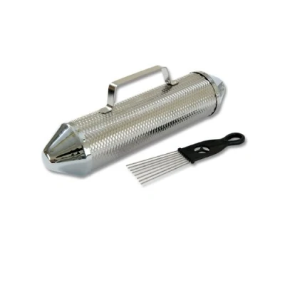 Superb metallic sound Metal shaker and guiro combined Comb style scraper included Quality percussion instrument Easy to play