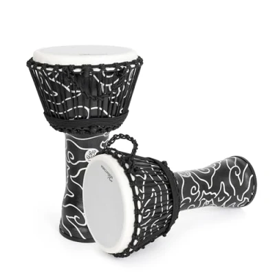 Top-quality djembe from the world’s foremost djembe manufacturers in Ubud, Bali; lightweight and portable for classrooms and group sessions Robust synthetic one-piece shell for maximum durability Rope tuned in the traditional style for optimal sound Featuring a patterned sarong wrap design Mylar ‘Fiberskin’ drum head for durability in all conditions