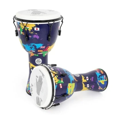Made by the world’s foremost djembe manufacturers in Bali Classic instructive drumhead for easy teaching and learning! Vibrant, inclusive ‘world’ design on body Robust synthetic one-piece shell for maximum durability Fantastic sound quality with crisp slap, deep tone and booming bass