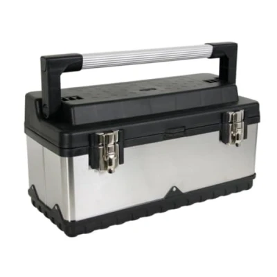 ToolBox in stainless steel Toolbox with detachable tool tray with four compartments Toolbox with aluminium handle Dimensions of 505 x 235 x 225 mm Box weight 2780 g