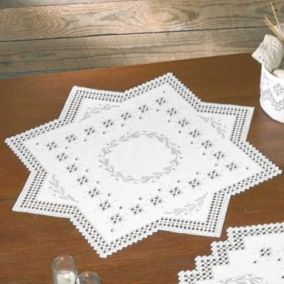Permin Hardanger Tablecloth Embroidery Kit Wreath Counted Pattern