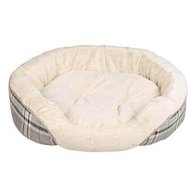 Pet Brands Dog Bed Grey Check Medium/Large Washable Round