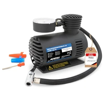 Petex 445110 Air Compressor 12 V, 18 Bar, Includes 3 Piece Adaptor Set