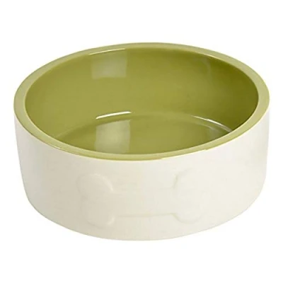 Petface Bone Ceramic Dog Bowl, 20 cm, Cream/Green