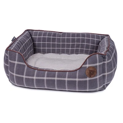 Petface Grey Window Pane Check Square Bed will help your pet relax and sleep comfortably by keeping them warm and providing a feeling of security. This luxury dog bed is made from super soft fleece to allow your pet to remain cosy throughout. A removable faux sheepskin cushion cover which is reversible to show a beautiful coordinating check design. The bed has black piping around the edges and an anti-slip base to prevent sliding on over the floor Machine washable at 30c, however it should not be put on a high spin, tumble dried or ironed.