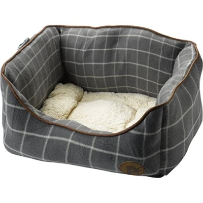 Petface Grey Window Pane Check Square Dog Bed, Small