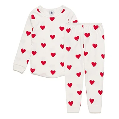 Petit Bateau Heart Pyjama set for kids, Size: 2y, Marshmallow/terkuit