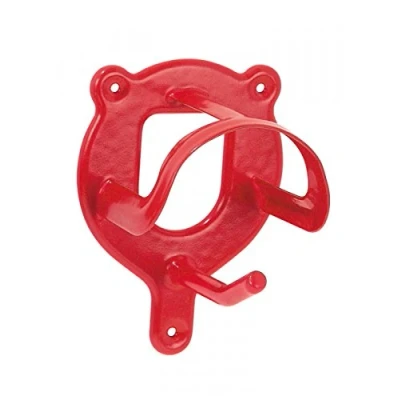 Red powder coated metal holder for bridles, headcollars and other small horse accessories A small additional hook for auxiliary reins, lead ropes, ropes and straps With three pre-drilled litres for quick and easy installation For order in the saddle chamber, in the box, in the stable and in the stable. Can also be used in the saddle cabinet.