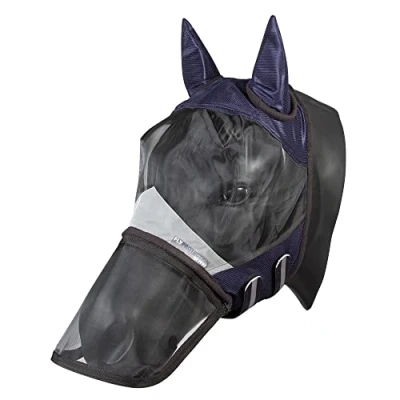 The Fly Protection fly mask with nose protection reduces with its UV blocking (max. 70%) the risk of sunburn and sun bleaching. Warning: UV protection may decrease over time Breathable 3D mesh material - the air circulates under the mask while providing protection against flying insects Air motion technology - advanced cooling effect, reduces heat build-up and promotes dryness Nostril protection easily removable with zip, ventilated ears, elastic fleece trims for optimal and comfortable fit, two Velcro fasteners for easy putting on and taking off Material: 100% Polyamide; Fabric Insert: 100% Polyester