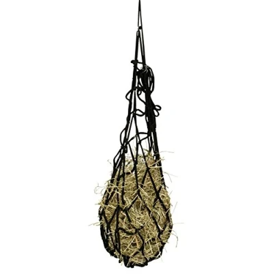 Amazon Hay net in sturdy design With rings and made of thick cord Mesh width: approx. 8 cm Cord diameter approx. 0.7 cm Capacity: approx. 1 hay bale