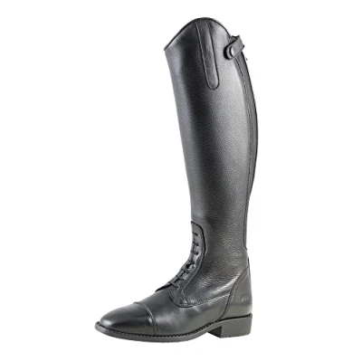 Pleasantly lightweight leather boots made from extremely soft, slightly grained leather in anatomical cut The boot is equipped with a leather lining on the inside and has a long zip on the back of the calf and a sporty lace-up look The additional elastic insert inserted along the zip also ensures optimal adjustment of the boot The leather boot is also equipped with a press stud to secure the zip at the end of the shaft The ribbed sole and the ride-friendly heel give a good grip in the stirrup