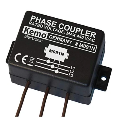 Connects all 3 internal network phases capacitively Transfer rates up to 650 Mbit for internet or computer networking If the signal is only fed in 1 phase, the phase coupler connects every 3 phases Also suitable for wireless intercoms Dimensions: approx. 72 x 50 x 28 mm (without mounting straps)