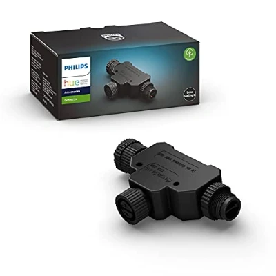 Make smart outdoor lighting even more flexible with the Philips Hue connector Suitable for use and expanding Hue low-voltage outdoor lights Plug the connector to the Hue extension cable (sold separately) and extend the distance between the Hue power supply and the first Hue outdoor light or the distance between individual Hue lights Beautify outdoor area and set highlights in garden with an all-round light distribution