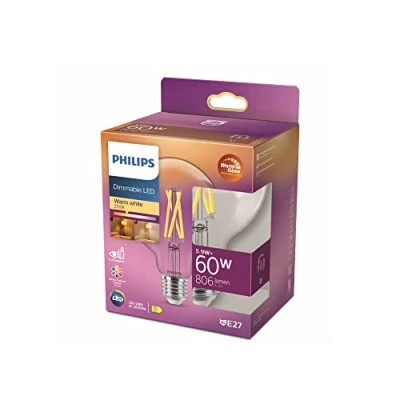 With this Philips LED filament bulb from the WarmGlow line, you not only provide your home with warm light, but also with light that is extra atmospheric. The WarmGlow technology not only adjusts the brightness of the light when the bulb is dimmed, but also the colour temperature. This makes the light warmer with relatively low consumption. This larger globe-shaped LED bulb spreads a warm white light with a colour temperature that can be dimmed from 2700K to 2200K at its lowest. This releases a maximum light output of 806 lumens, for a consumption of 5.9W (136 lumens per watt). Due to the clear finish, the LED filament is clearly visible, so that the bulb resembles a traditional incandescent bulb. The bulb is also equipped with a large fitting (E27). The light emitted by the bulb also has a high colour rendering index (CRI value) of 90. This means that the light quality is high and the light colours look very natural. Click here for more information on Colour Rendering Index/CRI.
