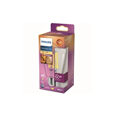 Philips LED WarmGlow Edison Lamp with 60 W, E27 Socket, Clear, Dimmable