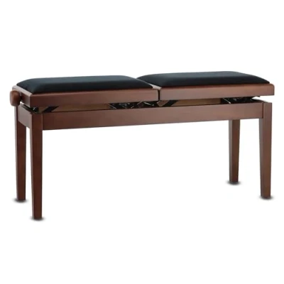 Solid wood for maximum stability: The GEWA Piano Bench Deluxe Double is made of robust solid wood, ensuring an impressive breaking load of over 2 tonnes. Individually adjustable seat height: The smooth scissor mechanism allows for precise and independent height adjustment of the seat surfaces between 48.5 and 56 cm. Comfortable velour cover: The black velour seat cover not only offers an elegant look but also optimal seating comfort for long practice sessions. Firmly fixed feet: High-strength M10 screw dowels ensure that the bench feet are stably connected to the frame and do not slip during play. Versatile colour selection: The piano bench is available in four different colours to blend harmoniously into any home or studio decor.