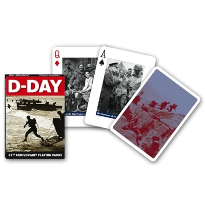 D-Day card game, 55 sheets in poker size (1 joker + 2 info cards) D-Day playing cards in collaboration with the Imperial War Museum in London, the world's leading museum of war and conflict. D-Day represents the largest invasion fleet of all time: 175,000 soldiers were supposed to liberate Normandy from the Wehrmacht., Manufacturer: Piatnik