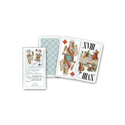 Historical tarot game with 54 cards This facsimile edition of the "Damen Tarock" makes original playing cards of the house Piatnik available again, which were first issued over 100 years ago. The game has a smaller format than the usual tarot cards, apparently to be able to play better with delicate women's hands. (52 x 97 mm versus 63 x 113 mm). It was executed as a chromolithography and still thrills the colorfulness and plasticity of the figures and scenes., Manufacturer: Piatnik