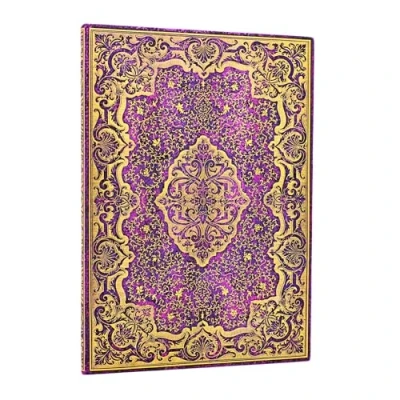 Format: GrandeSize: Width: 205mm (8") x Height: 300mm (11¾") x Depth: 15mm (½")Interior: LinedSpace between lines: 7.83mmLines Per Page: 34Page Count: 128PagesClosure: Elastic BandColour: Purple GSM (paper weight): 120Binding Type: Smyth SewnCover: HardcoverEdge Printing: YesPouch Type: Memento PouchInterior Paper: Custom-designed laid paperRibbon Markers: 2100% recycled binder boards Edge Printing: YesPouch Type: Back Cover PouchInterior Paper: SmoothRibbon Markers: 1 Decorative printed cover paperFSC-certified text paperThreaded stitching and glue, as neededCloth headbandsAcid-free sustainable forest paperFlexible cover and spine